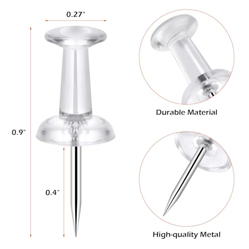 • High Quality Materials: Our push pins are designed with high-quality steel tips and transparent plastic heads, which are sturdy, durable, and not easy to bend and break. The clear thumb tacks for walls will not affect the original appearance of the things they are fixed