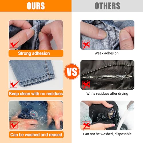 • No More Need Sewing Machine: Compared to the intricate operations of a sewing machine, our fabric glue is incredibly easy to use. Our fabric glue kit comes equipped with Glue Spreaders and Clips. Simply apply the glue to the seam, use our Glue Spreaders to evenly distribute it, and secure the seam with the provided clips. Wait for 24-48 hours, and you’re done. Friendly reminder: Do not open the clips to check progress before the glue has fully dried.