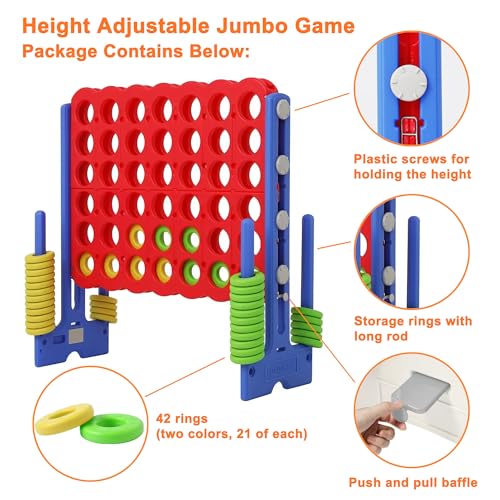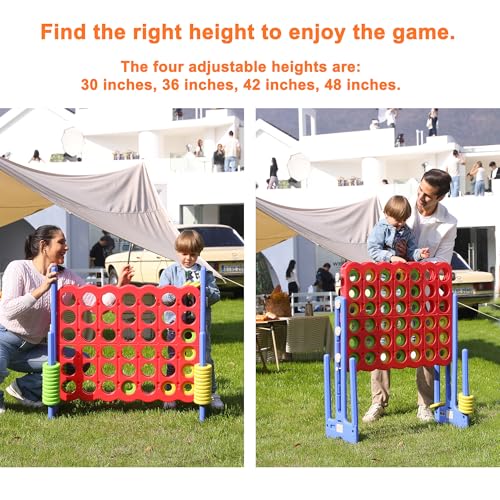 • 【Upgraded Model】: Height adjustable giant four connect in a row game encourage socializing, problem solving, matching, strategizing, focus, hand-eye coordination skills with the interactive as kids work together to win,perfect for playing with partner.
