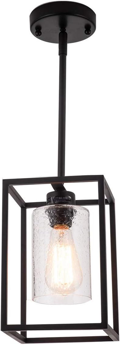 • Design: Single light cage pendant light with metal frame and seeded glass shade ,unique and perfect decoration for modern or farmhouse house. The seeded glass shades of the Pendant Ceiling Light create a wonderful glow to illuminate your space with style.